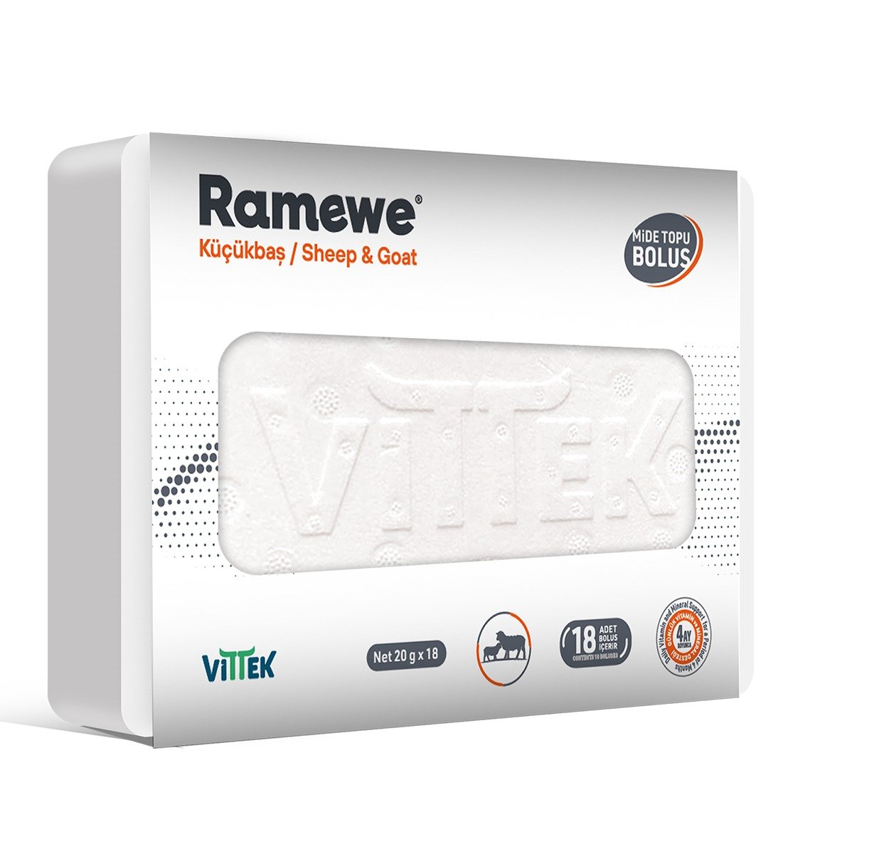 Ramewe, küçükbaş hayvanların bağışıklık sisteminin güçlenmesine, reproduction gelişmesine, kas ve kemik yapısının güçlenmesine, fertilitenin artmasına, ayak, tırnak yapısının korunmasına, süt ve kolostrum kalitesinin artmasına destek sağlayarak, genel metabolik faydalar sağlayan uzun süreli genel kullanım amaçlı vitamin mineral kombinasyonlu bolustur.